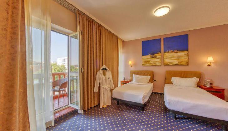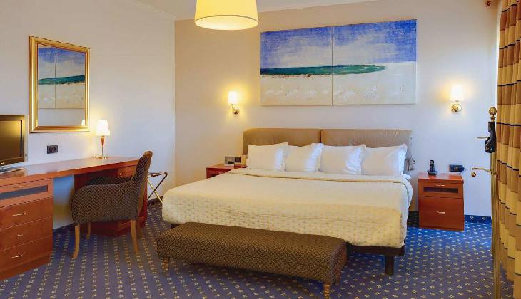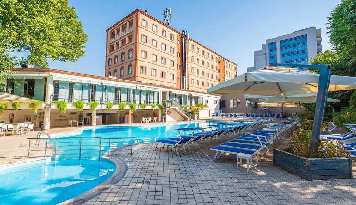 Each of our 126 guest rooms presents an ideal blend of comfort and functionality. The open-air swimming pool surrounded by the wonderful garden is the right place to relax and enjoy during the summer. Our hotel also offers a fully equipped fitness center with a sauna available free of charge to our guests. Conference facilities and a business center are also available. During your stay do not forget to visit the 'Raffaello' restaurant, which offers dishes of Italian and International cuisine.
