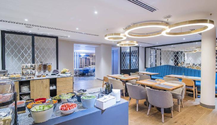 رستورانهای RAFFAELLO RESTAURANT و MEDITERRANEO PIZZERIA انواع غذاهای ایتالیایی و بین المللی را پخت و سرو میکنند. میهمانان میتوانند ناهار خود را در تراس هتل نوش جان کنند و از فضای استخر و اطرافش لذت ببرند. ساعات کاری این دو رستوران از 12ظهر تا 11شب است. و کافه-بار VENICE BAR که در طبقه اول هتل است، به صورت 24 ساعته در خدمت مهمانان است.