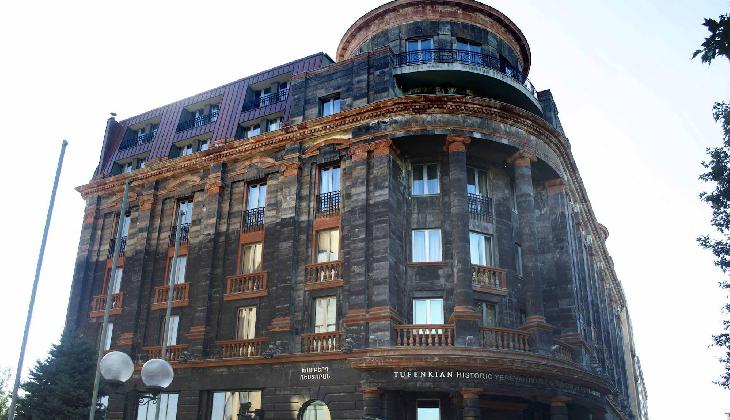 هتل توفنکیان هیستوریک ایروان جدیدترین عضو هتلهای موروثی توفنکیان است که در سپتامبر 2012 در مرکز شهر ایروان، یکی از قدیمیترین شهرهای جهان، افتتاح شد. هتل توفنکیان هیستوریک هتلی 4 ستاره است که در تقاطع خیابانهای هانراپتوتیان (Hanrapetutyan) و بوزند (Buzand) روبروی بازار محلی ورنیساج ایروان- بازار صنایع دستی و سوغات- واقع شده است. نمای خارجی هتل هتل توفنکیان هیستوریک، معماری ایروان قرن نوزدهم و بیستم را نشان میدهد. ایده این دکوراسیون و طرح، ساخت یک ساختمان جدید با الهام از طراحی و معماری اروپای کلاسیک و ارمنستان قرن بیستم بوده است. طراحی هتل توفنکیان هیستوریک، حاصل همکاری بین طراحان مشهور از جمله معمار معروف جهان و طراح داخلی Clodagh، جیمز توفنکیان و بهترین معماران ارمنی بوده است.