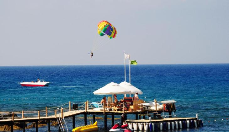 * One of the well known hotel beaches in North Cyprus and especially in Kyrenia range, Denizkızı Beach with its gently shelving shoreline offers safe swimming and sea related leisure activities for all age groups. A self service restaurant overlooking the sandy beach with a wide selection of items on its menu as well as an upscale beverage bar will complement your day on the beach.