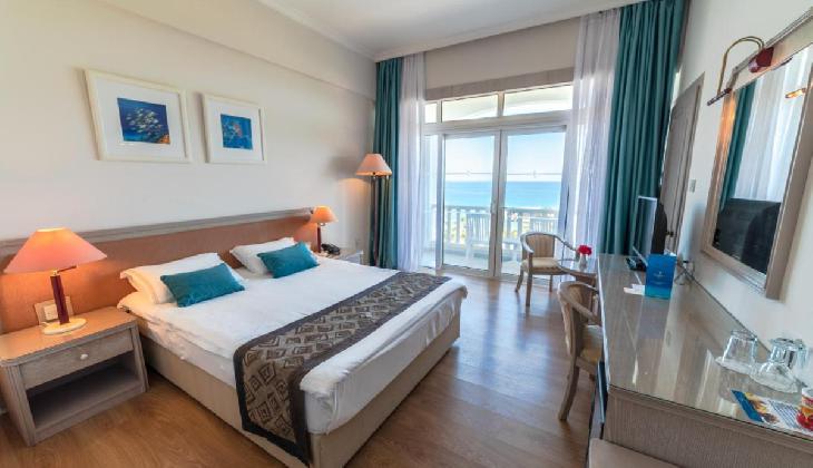 * Denizkizi Royal Hotel offers beautifully appointed and tastefully furnished tranquil rooms and suites, offering sea view, luxury bathrooms and balconies. All rooms face the sea. A total of 54 tastefully furnished guest rooms including 6 suits are kept at top shape inside and out. In-room amenities include: air-conditioning, hairdryer, safe, minibar, balcony including chairs, coffee and tea making facilities (provided upon request),full size wardrobe, carpeted floors, electronic door locks, double glazed windows, sound proof walls, blackout curtains, smoke detectors.