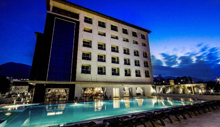 Grand Pasha Hotel, is the 5 star boutique Casino & Spa that has entered into service in Kyrenia in 2013. The hotel, which is located against the unprecedented view of Mediterranean blue and Beşparmak Mountains, is 44 km away from Ercan Airport. The hotel, which is only 150 meters away from sea, is also one of the most luxury spa centers of Kyrenia and offers joyful moments to its visitors both in summer and winter months. In the hotel that has 128 rooms in total, there are 12 corner suites, 12 executive suites, 103 standard rooms and 1 disabled room. Grand Pasha Kyrenia specialist chefs, present examples from world cuisine with the open buffet prepared with care and the A la carte restaurant. While the ball room with the capacity of 700 people hosts magnificent feasts, it serves with a private meeting room to be used for business meetings.