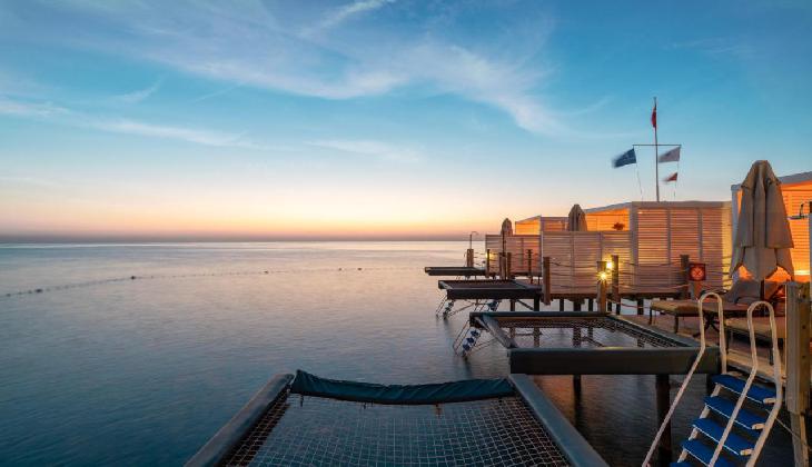 در ساحل هتل کایا پالازو می توانید در تخت هایی که مخصوص آفتاب گرفتن هستند لم بدهید و نوشیدنی مورد علاقه خود را می کنید. انواع تفریحات آبی در ساحل هتل ارائه می گردد. استخر روباز هتل 685 متر است. همچنین یک استخر جداگانه مخصوص بزرگسالان و یک استخر مجزای دیگر مخصوص کودکان در فضای باز هتل کایا قبرس وجود دارد.