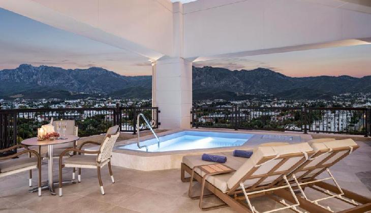 هتل مریت رویال دایموند در منطقه زیبای آلسانجاک کمی دور از مرکز شهر گیرنه، در یک موقیعت خیره کننده ساخته شده است. منظره ای که از کوه های پنج انگشتی معرف قبرس شمالی خواهید دید را در کنار خدمات لوکس و با کیفیت این هتل فراموش نخواهید کرد.