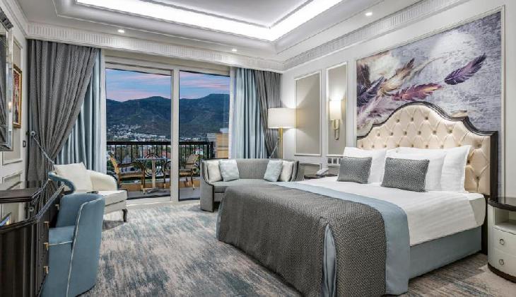 اتاق نشیمن جداگانه مجهز به مبلمان و میز، بالکن، مینی بار، حمام به همراه وان، دستگاه اسپرسو و چای/قهوه ساز، میز آرایش، سیستم هوشمند، تلویزیون در نشیمن و اتاق خواب، سشوار، گاو صندوق، کابل شارژ برای تمامی انواع موبایل ها، اینترنت رایگان و دسیستم بیدار باش مسافر