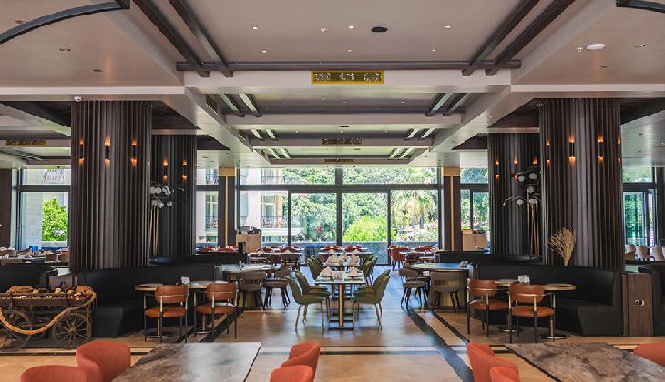 * The Main Restaurant, situated at the ground floor, offers by means of impeccable services, various dishes from the Turkish, Cypriot and the International cuisine, collection wines and fine drinks. From the stylish open terrace of the restaurant you may admire a charming view of the garden.