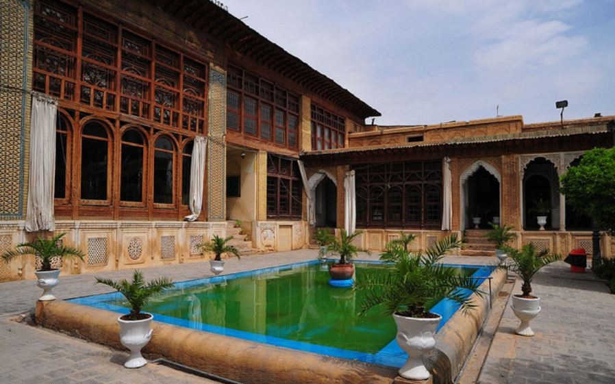 به داخل خانه زینت الملوک که وارد می شوید، وارد حیاطی می شوید که دو باغچه یک شکل در مقابل هم قرار گرفته و میانشان حوضی فیروزه ای رنگ واقع شده است. هر چه سنگ می بینید حجاری شده و طرحی زیبا روی آن نقش بسته است.
