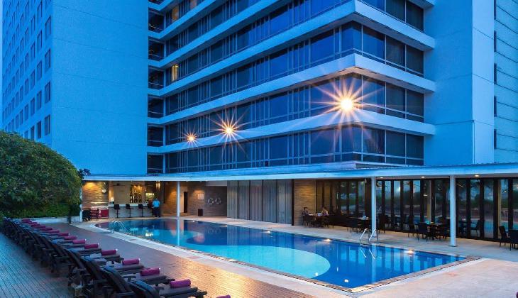 هتل ایستین ماکاسان Eastin Hotel Makkasan هتل ایستین ماکاسان Eastin Hotel Makkasan که در قلب منطقه تجاری بانکوک واقع شده است، یک اقامتگاه لوکس محسوب میشود که امکانات کامل یک هتل 4 ستاره را در اختیار مهمانان قرار میدهد. ایستگاه متروی هوایی چیدلوم Chidlom و مرکز خرید سنترال ورلد پلازا Central World Plaza در فاصله 1.5 کیلومتری از هتل قرار گرفتهاند. بازار عمده فروشی پراتونام Pratunam هم فقط 500 متر از هتل ایتسین ماکاسان Eastin Hotel Makkasan فاصله دارد. همچنین مهمانان هتل میتوانند از سرویس رفت و برگشت رایگان به چیلدوم Chidlom، دپارتمان استور سنترال ورلد Central World و پراتونام Pratunam استفاده کنند. تمام اتاقهای هتل ایستین ماکاسان Eastin Hotel Makkasan طراحی داخلی بسیار زیبایی دارند و از سبک مدرن برای دکور آنها استفاده شده است. امکاناتی که در هر اتاق تعبیه شده است شامل یک تلویزیون ال سی دی کابلی، تکنولوژی سرگرمی خانگی و یک مینیبار مجهز میباشد. حمام هر اتاق بسیار خوب و جادار است و در آن یک آینه بزرگ و سشوار نیز قرار داده شده است. دسترسی به اینترنت وایفای رایگان نیز در اتاقها امکانپذیر است. شما میتوانید هرروز پس از گشت و گذار در شهر و بازگشت به هتل ایستین ماکاسان Eastin Hotel Makkasan خستگی خود را با شنا در استخر روباز آن برطرف کنید و همزمان از تماشای چشمانداز شهر لذت ببرید. همچنین میتوانید از خدمات دیگر هتل نظیر ماساژ ، آبگرم درمانی و یا تمرین در باشگاه ورزشی استفاده کنید. سالن پذیرایی هتل ایستین ماکاسان Eastin Hotel Makkasan با ظرفیت 600 نفر آماده پذیرایی از جشنها و جلسات شماست. رستوران گلس هوس The Glass House با یک بوفه دریایی و منوی بینالمللی آماده پذیرایی از مهمانان هتل ایستین ماکاسان Eastin Hotel Makkasan است. در رستوران گارلیک اند پپر Garlic & Pepper نیز میتوانید انواع غذاهای آسیایی را در فضایی زیبا میل کنید. هردو رستوران هم به استخر هتل و هم به افق زیبای شهر بانکوک چشمانداز خوبی دارند.