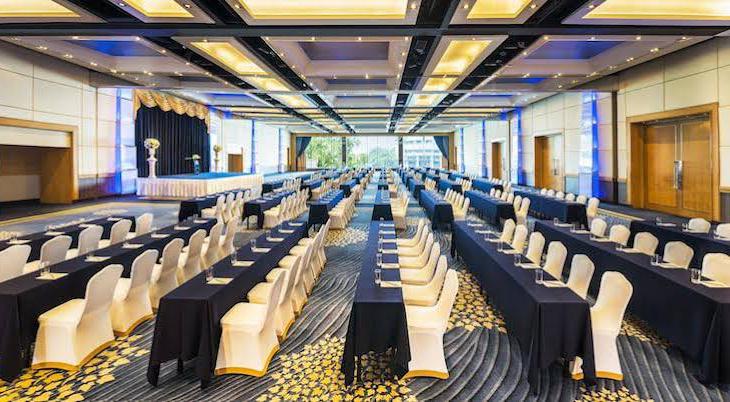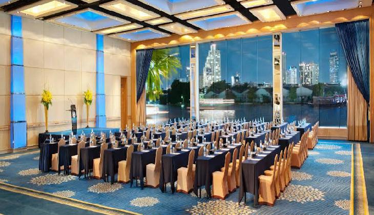 * Royal Orchid Sheraton Hotel & Towers, Bangkok provides a total meeting and function space of 4,090 sq. m including the showcase 1,080sq. m Royal Orchid Grand Ballroom, 5 freshly renovated Function Rooms and 7 Riverside Meeting Rooms all situated on the Hotel Conference floor. Renowned as Thailand’s most technologically advanced ballroom, the Royal Orchid Grand Ballroom is also unique in its view of the Chao Phraya “River of Kings.\" It can accommodate up to 1,250 persons theater-style and be divided into three sections. Partitions are specially designed as sound barriers, capable of blocking sound up to 53 decibels. Highlighting the hi-tech digital equipment are four visual screens, LCD projection, broadband Internet, 20 JBL speakers, intelligent lighting system capable of projecting up to 65 logo motifs with more than 16 millions color shades, and a state-of-the-art sound system. The hotel is also a trendsetter in themed events, and is a popular venue for local parties and balls.