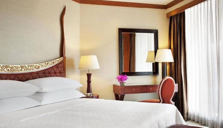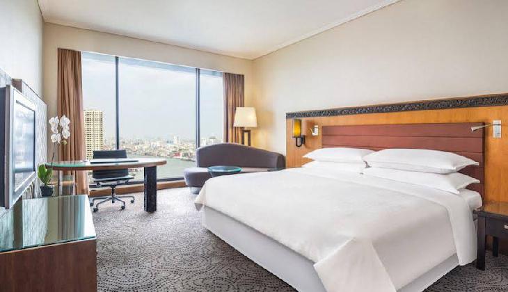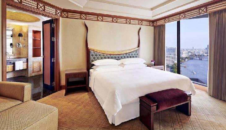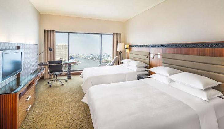 * All 740 spacious guestrooms offer panoramic river views and are fully equipped with modern facilities and technology including the Sheraton Sweet Sleepersm Bed, IDD phone, hi-speed internet access, flats screen television, tea and coffee making facilities and more. The Executive Suite, with contemporary Thai furnishings, has a separate living room with comfortable seating and additional television.