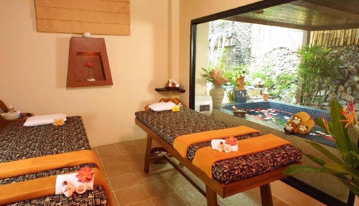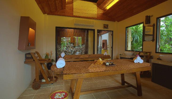 * Nestled in a tropical garden, the Heavena Spa incorporates traditional Thai and Western techniques into massage therapies and body treatments. The spa consists of two single and three double open-air terraced rooms and features an outdoor shower and spa tub. The spa also includes a beauty salon.