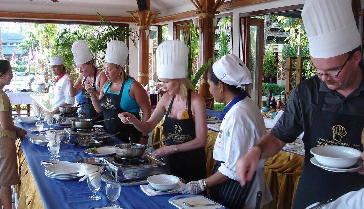* The Chaba Cabana Resort and Spa has two freeform pools; palm trees and a pool bar surround the main pool located on the beachfront, while the garden pool is next to the guestroom building. Chaweng Beach offers calm swimming conditions all year round, and the resort provides complimentary kayaks and canoes. Sunbathing is a popular pastime, and for children there is a wading pool and playground. In addition, guests can try the Thai cooking lessons.