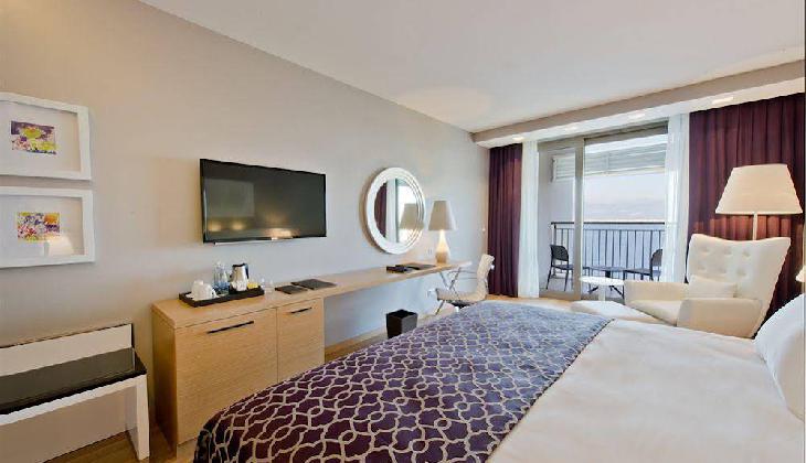 Balconies with views of the Mediterranean or the Taurus Mountains are featured in all Akra Baruts’s rooms. The contemporary-style rooms include flat-screen TVs with satellite channels and free Wi-Fi.