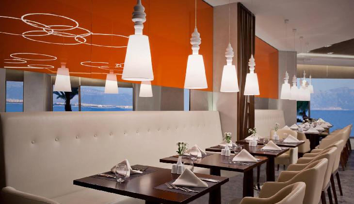در رستوران و کافه-بارهای هتل طیف وسیعی از غذاهای ترکیه ای و بین المللی پخت میشود. ساعات سرو صبحانه نیز از 7 تا 10 صبح می باشد. برای نوشیدن آبمیوههای تازه و اسنک های مختلف حتما سری به کافه-بارهای هتل آکرا باروت Akra Barut Hotel بزنید.