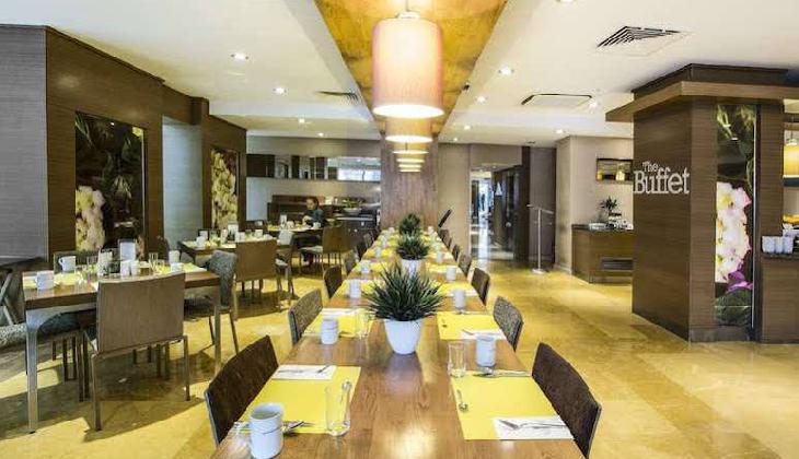 \"The Buffet\" Restaurant features a wide array of specialities for open buffet breakfast and group meals Hours - 07:00 a.m. - 10:30 a.m. daily