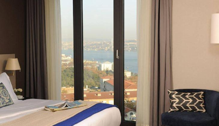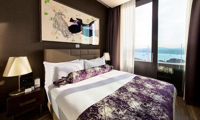 - اتاق لوکس دو نفره با منظره دریا: این اتاق زیبا 25 متر مربع مساحت دارد و منظره آن رو به تنگه بسفر است. شامل یک تخت خواب بزرگ دو نفره است و امکان اضافه شدن نفر سوم به عنوان مهمان نیز وجود دارد.
