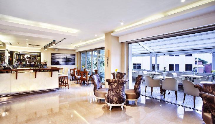هتل انواع گزینههای غذاخوردن و آشامیدن دارد: یک کافه، یک بار که ورودی مستقیم از خیابان دارد، یک بار در لابی، یک بار و یک رستوران روی بام با انواع غذاهای مدیترانهای که چشمانداز خیرهکنندهای به تنگهی بسفر دارد. صبحانه به صورت یک بوفهی متنوع سرو میشود.