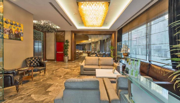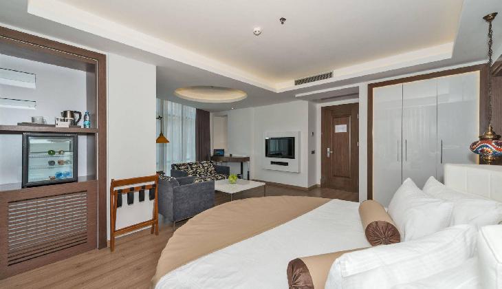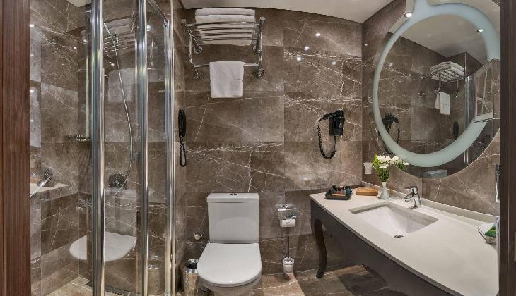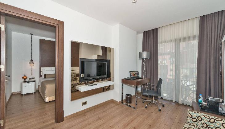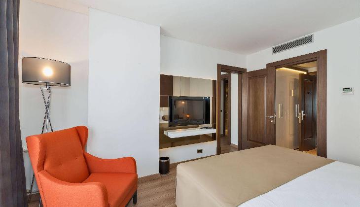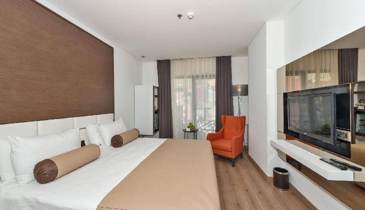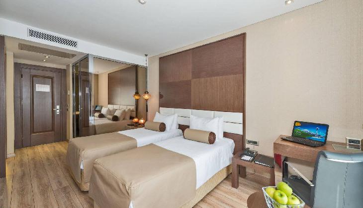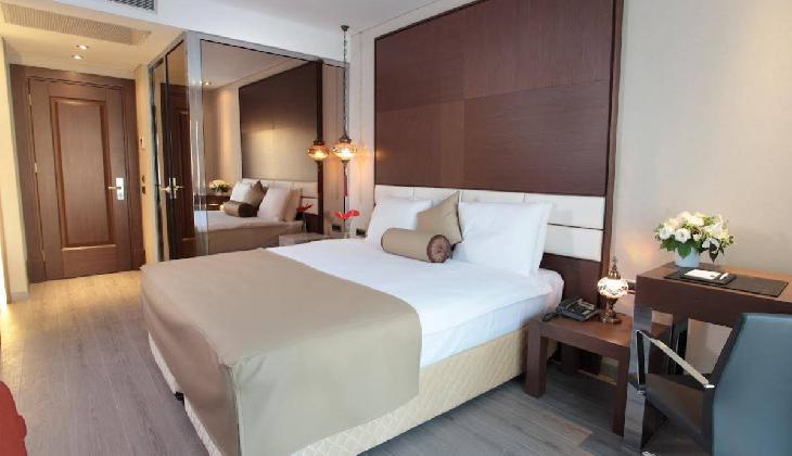 A rich daily breakfast is served buffet style and the a-la-carte restaurant offers meals from Turkish and international cuisine. Listening to soothing live music, you can enjoy a refreshing drink at the lobby bar. Room service is also provided.