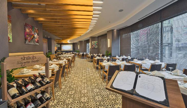 یکی از مکانهای پر رفتوآمد در هر هتلی رستوران آن است. رستوران این هتل توانسته با ارائه انواع غذاهای ترکی در وعده ناهار و شام اکثر سلیقههای مهمانان را پوشش دهد. مهمانان برای استراحت میتوانند به اسنکبار بروند و یک میان وعده را در آنجا صرف کنند.