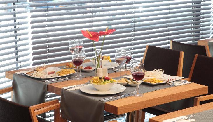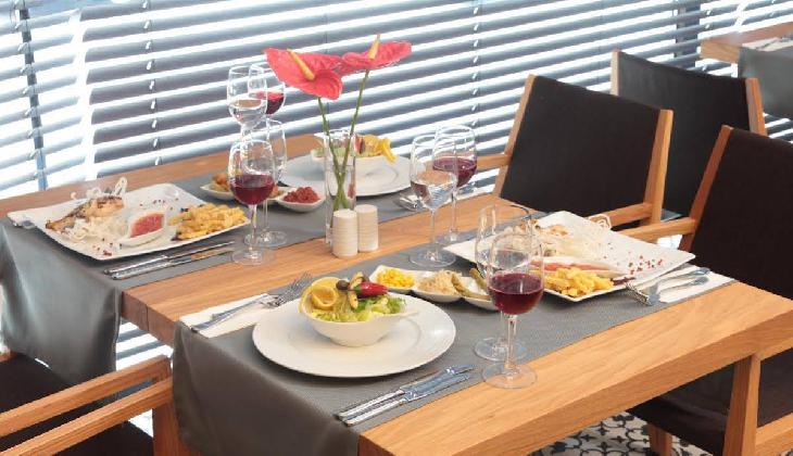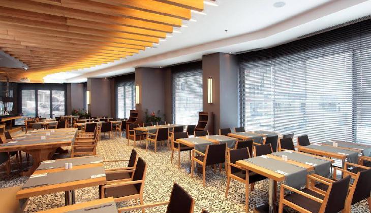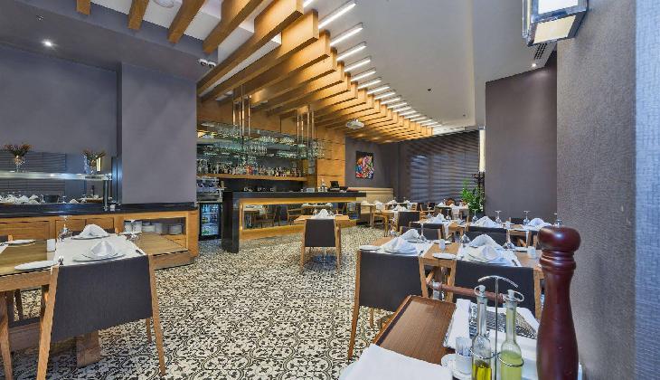 صبحانه به صورت کاملا مفصل بوفه باز ارائه میگردد. غذاهای ترکیهای و بین المللی نیز در رستوران این هتل برای وعدههای ناهار و شام آماده میگردد. نواخته شدن موسیقی زنده و نوشیدن نوشیدنیهای فصل در کافه-بار هتل، حس خستگی را از شما میگیرد و جانی دوباره به شما میدهد. همچنین شما میتوانید غذا و نوشیدنی خود را با یک تماس کوتاه در اتاقتان تحویل بگیرید.