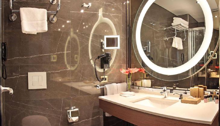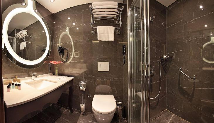 برای همه اتاقها دوش اختصاصی به همراه آبگرم در دسترس است، به علاوه سشوار و لوازم آرایشی و بهداشتی برای مسافران آماده است. از دیگر امکانات موجود در اتاقهای هتل، اتو است.