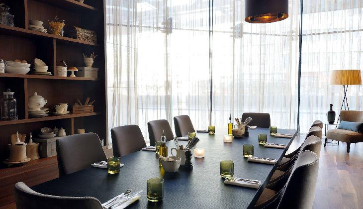 With bright with floor-to-ceiling windows, The Lobby Lounge is the perfect space for small meetings. As a day and night lounge with a wood oven, guests can easily work and relax in one place, as well as enjoy an outside terrace when the weather permits.