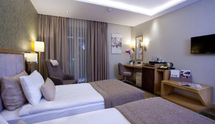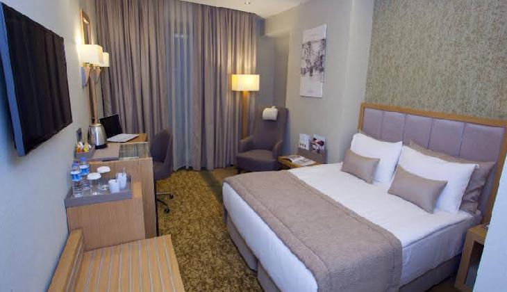 A stylish and modernly furnished hotel, enjoying a very central location close to Taksim Square in Istanbul. Guests can relax in the hotel's Turkish Bath and also benefit from the indoor pool after a long day sight-seeing around this fascinating city. There are many restaurants, cafe bars, shops and cultural venues in the vicinity of the hotel and a bus and metro station are just 300m away. The historical district of Sultanhamet is 5 km from the hotel and attractions such as the Galata Tower and Dolmabahce Palace are within 2 km.