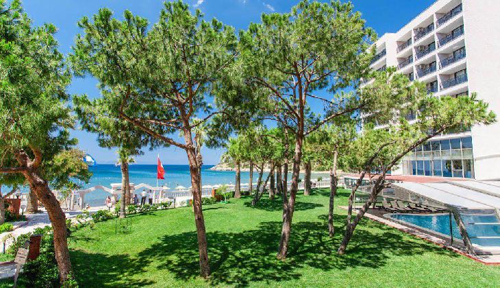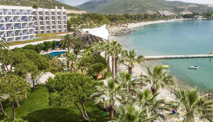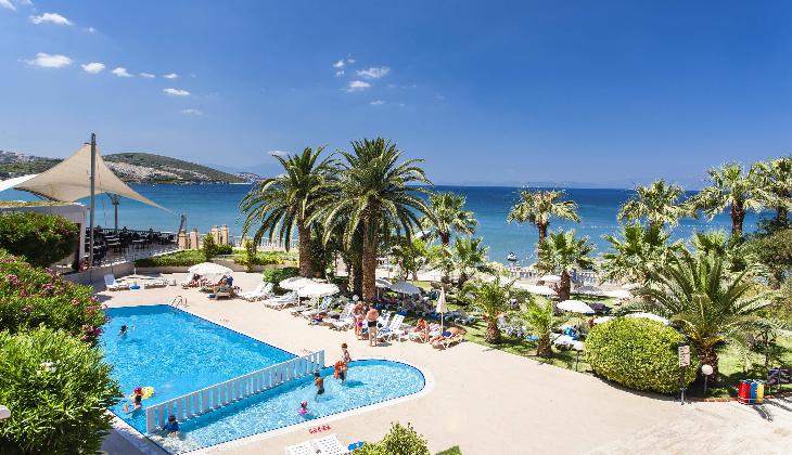 Hayallerinizin çok ötesinde bir yer... Tusan Beach Resort Kuşadası’nda muhteşem bir koy manzarasına karşı konumlanmış olup denize sıfır konumdadır. Otelde açık yüzme havuzu, açık çocuk havuzu, çocuk havuzunda su kaydırakları ve yarı kapalı yüzme havuzu mevcuttur. Donanımlı bir SPA merkezine sahip olan otel yeşillikler ile bezenmiş bahçesi ile de göz doldurmaktadır. Kuşadası’nda hizmet vermektedir. Adnan Menderes Havaalanı\'na 76 km,Meryem Ana Evi\'ne 10 km. mesafedir. Denize Sıfır Konum - Mavi Bayraklı Plaj - Özel Kum Plaj - Cocuk Dostu OtelHavuz ve Plaj OlanaklarıOtelde yarı kapalı yüzme havuzu bulunmaktadır. Ayrıca otelin, misafirlerine özel kum plajı da bulunur. Plaj mavi bayrak ödüllüdür.Aktiviteler:Havuz Oyunları - Voleybol - Plaj Voleybolu - Basketbol - Su Topu - Tenis - Masa Tenisi - Boaccia - Aerobi̇k - Ceşi̇tli̇ Skeç Sovları - Mini Disko - Kabare - Tenis Gündüz - Masa Tenisi - Badminton - Basketbol - Dart - Açık Hava Fitness - Deniz Bisikleti - Kano - Sauna - Hamam 1 Mayıstan İtibarenCocuk / Bebek: Tesiste çocuk ve bebekler için çocuk kulubü, çocuk parkı ve çocuk havuzu bulunmaktadır. 1 Mayıstan itibaren Not:4 ile 12 yaş arası tüm çocuk grupları için eğlenebilecekleri aktivite programları mevcuttur. 0-3 yaş tüm aktiviteler sırasında ailelerin bebeklerine refakat etmeleri zorunludur.Kış KonseptiYarım PansiyonHizmet Saatleri:07:00 - 10:00 Kahvaltı19:00 - 21:30 Akşam YemeğiNot: Yarım pansiyon konaklamalarda alınan tüm içecekler ücretlidir.Konsept24 Saat Her Sey Dahil Her Sey Dahil : Konaklama bedeline sabah kahvaltısı, öğle yemeği, akşam yemeğinin yanı sıra alkollü ve alkolsüz içeceklerin dahil olduğu konsepttir. Ayrıca otellere göre farklılık göstermekle birlikte dondurma, snack büfe, fast food büfe, beş çayı gibi pek çok ara öğün de ücretsiz olarak sunulur. Hizmet Saatleri:07:00 - 10:00 Kahvaltı10:00 - 11:00 Geç Kahvaltı kontinental-sıcak yiyecek yoktur13:00 - 14:00 Öğle Yemeği19:00 - 21:30 Akşam Yemeği19:30 - 22:00 A La Carte Restoran19:30 - 22:00 A La Carte Restoran11:00 - 17:00 Perge Cafe Snack17:00 - 18:00 Perge Cafe Yaş & Kuru Pasta, Kahve & Cay23:00 - 11:00 CAFE 24 meşrubat, şarap, bira-Haftalık konaklama yapan misafirlerin belirtilen a\'la carte restaurantların her birinden 1 kere kullanım hakkına sahiptir. 7+ gece konaklamalardaBar Saatleri:11:00 - 23:00 Troy Bar09:00 - 24:00 Aspendos Bar10:00 - 17:00 Perge Cafe23:00 - 02:00 Miletos Disko16:00 - 24:00 English Pub extraÜcretsiz Hizmetler:Havuz Oyunlari - Voleybol - Plaj Voleybolu - Basketbol - Su Topu - Teni̇s - Masa Teni̇si̇ - Boaccia - Aerobi̇k - Ceşi̇tli̇ Skeç Sovlari - Mini Disko - Kabare - Sezlong Kumsal - Sezlong Havuz - Havlu Servi̇si̇ - Sahil Matras - Badminton - Darts - Açık Hava Fitness Köşe - Petanca Boaccia - Deni̇z Bi̇si̇kleti̇ - Kano - Cocuk Su Kaydırakları 1 Mayıstan İtibarenÜcretli Hizmetler:Sauna - Hamam - Masaj - Bilardo - Tenis Işiklar - Dalgiçlik - Minibar - Telefon - Si̇nema - Masaj - Motorlu Su Sporları - Oda Servis - British Pub - Diskoda İçecekler Odalarda; Duşlu Banyo, Klima, Uydu Lcd Tv, Mini Bar, Telefon, Saç Kurutma Makinesi, Cay Ve Kahve Seti, Balkon ve Wifi bulunmaktadır.