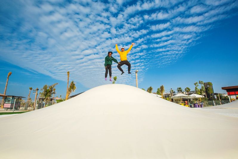 علاوه بر تمام ورزش ها و بازی های آبی در پارک آبی ساحل لامر، جالب است بدانید که در ساحل لامر دبی سینما هم وجود دارد. اما یکی از شیرین ترین تفریحات در ساحل لامر که افراد در تمامی سنین می توانند در آن شرکت کنند، هاوا هاوا نام دارد. هاوا هاوا یک زمین بازی به شکل زیر می باشد که می توانید روی آن بالا و پایین بپرید و از هیجان معلق ماندن در هوا برای چند ثانیه، لذت ببرید.