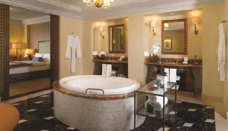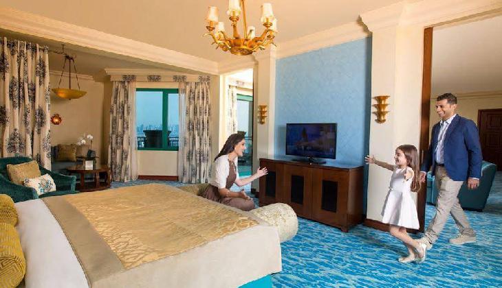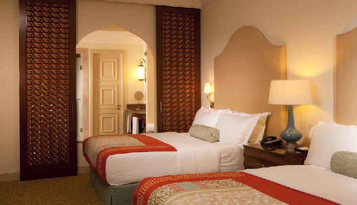 - اتاق کوئین پالم: به مساحت 45 متر مربع، برخورداری از چشم انداز منحصر به فرد افق دبی و جزیره نخل، مجهز به دو تختخواب یک نفره، امکان پذیرایی از حداکثر سه نفر شامل دو بزرگسال و یک کودک