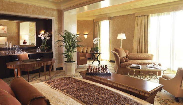 - سوئیت پرزیدنتال: به مساحت 220 متر مربع، برخورداری از چشم انداز جزیره نخل و خلیج فارس، دارای اتاق نشیمن، غذاخوری و فضای کار مجزا، دارای حمام مجهز به جکوزی، دارای یک تختخواب بزرگ دو نفره و دو تختخواب یک نفره، امکان پذیرایی از حداکثر سه بزرگسال یا دو بزرگسال و یک کودک زیر 16 سال.