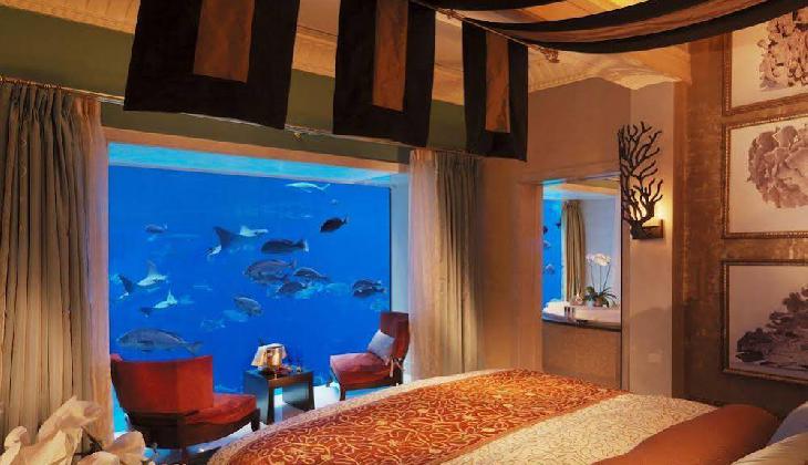 - سوئیت زیر آب: به مساحت 165 متر مربع، دارای پنجرههای سرتاسری ایمن و امکان برخورداری از چشم انداز منحصر به فرد و باور نکردنی زیر آب و بهرهمندی از منظره آکواریوم همراه با 65 هزار گونه جانوران آبزی، حمام مجهز به جکوزی با چشم انداز زیر آب، آسانسور اختصاصی، مجهز به یک تختخواب بزرگ دو نفره و دو تختخواب یک نفره، امکان پذیرایی از حداکثر 4 نفر شامل دو بزرگسال و دو کودک زیر 16 سال یا تنها سه بزرگسال یا یه بزرگسال و یک کودک یزر 16 سال.
