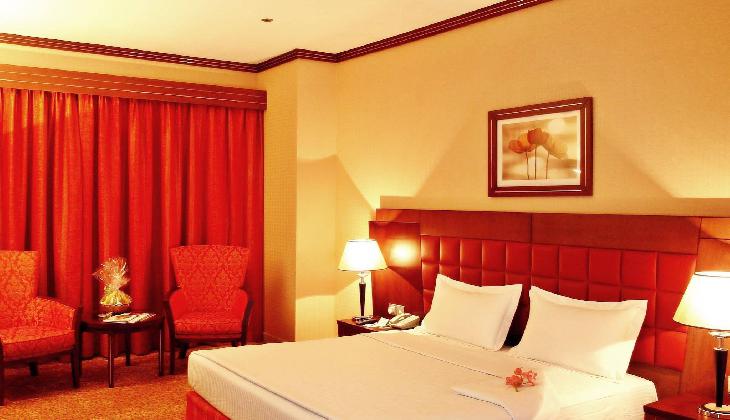 This 4 star hotel is located in the city centre of Dubai. It is a short drive away from the The Dubai Hertitage Village. The Hotel has a coffee shop, an indoor swimming pool, an outdoor swimming pool and a fitness centre/gym. All 170 rooms are equipped with minibar, hairdryer, safe, trouser press and air conditioning.