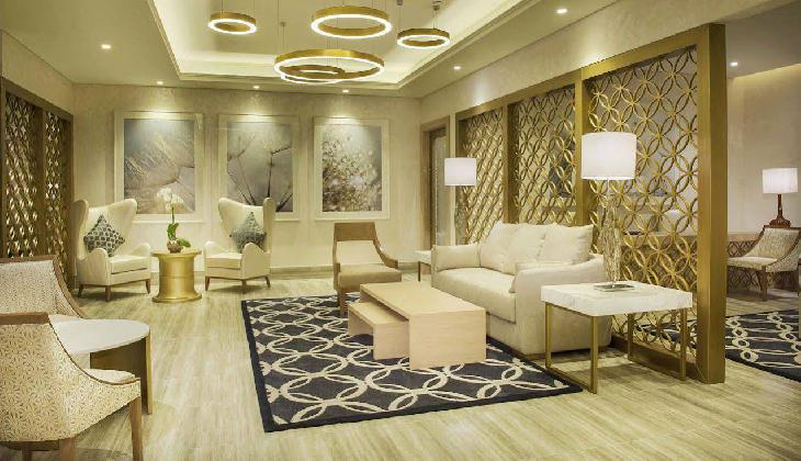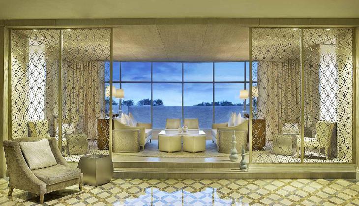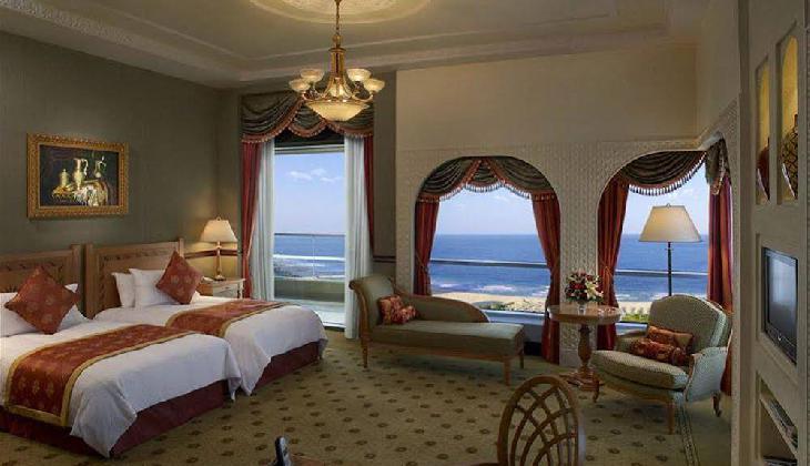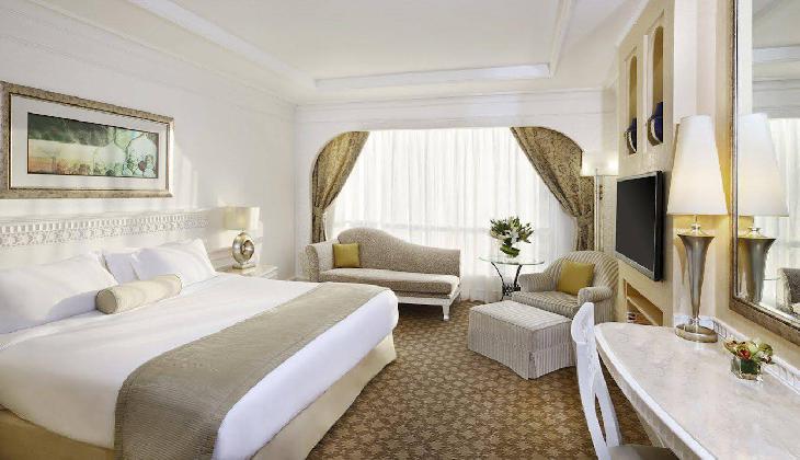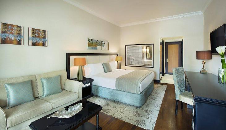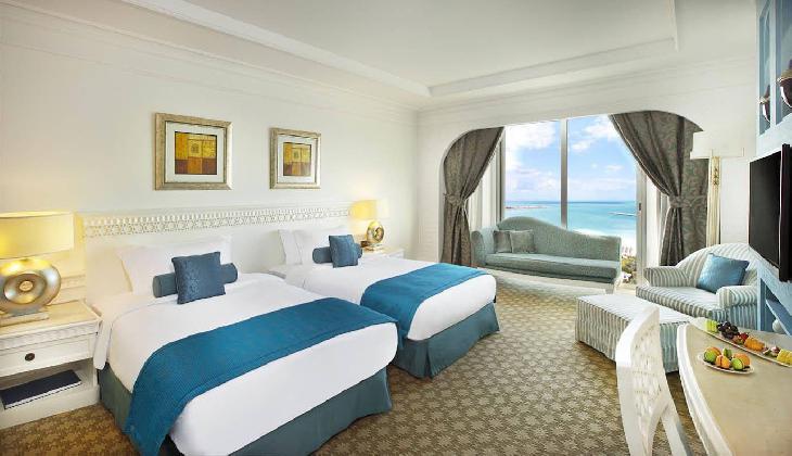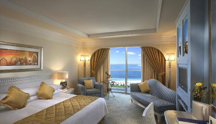 * Habtoor Grand Beach Resort & Spa features 442 climate-controlled guestrooms, all of which include elegant, light decor with Arabian touches and soft, fabric-covered furnishings including sofas.