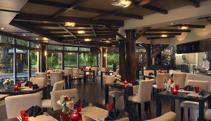 * Mun Chi: Contemporary Asian fusion dishes served in an Oriental-style surroundings, set amongst the gardens and overlooking the Arabian Gulf.