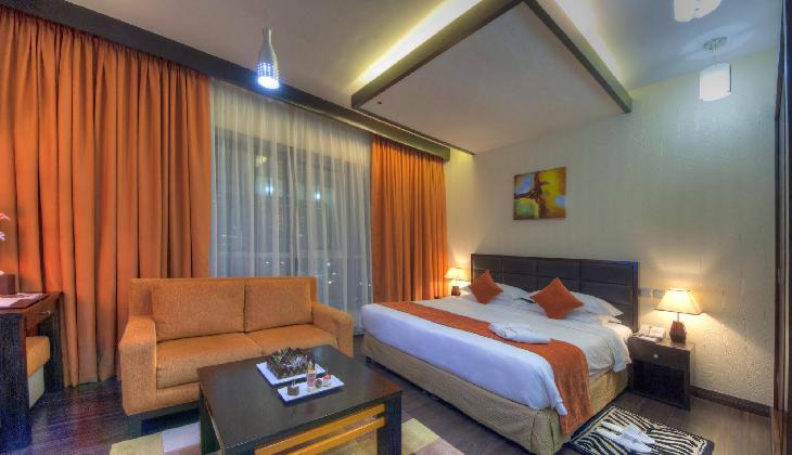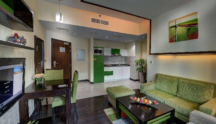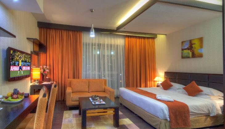 Marina View Hotel has 172 Studio rooms (Deluxe Room) which are fully furnished and can accommodate 2 adults. All the studio rooms are designed keeping comfort in mind. The studio rooms have Internet Connection, Iron, Ironing board, Washing Machine, Kitchen, Kitchenette and Safe Box. The hotel has rooms of 355 Square feet for delegates with bed size ranging from king size to twin bed. All the studios have both side views, either Sheikh Zayed Road or Marina View.