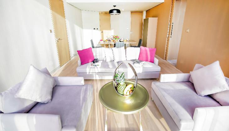 دکوراسیون تمامی اتاقها وسوییتهای هتل ریکسوس پریمیوم دبی، بسیار خاص و منحصر به فرد است. پنجرههای بلند و قدی با نمایش منظرهای زیبا، اقامت خاطره انگیزی را برای میهمانان فراهم میکند. ویوی بعضی از اتاقها رو به دریا و باقی به سمت شهری زیبا مملو از آسمان خراشهای بلند اما شیک و مدرن است.