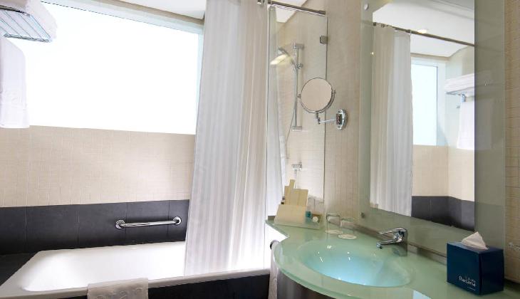 462 air conditioned guestrooms at Rose Rayhaan by Rotana Dubai feature minibars and laptop compatible safes. Accommodations offer city views. Beds come with Select Comfort mattresses, down comforters, and premium bedding. These individually furnished and decorated rooms include desks. At this 4.0 star hotel, accommodations include kitchenettes with refrigerators and coffee/tea makers. Bathrooms feature shower/tub combinations with handheld showerheads. They also offer phones, bidets, and bathrobes. Wired high speed and wireless Internet access is available for a surcharge. In addition to fax machines and newspapers, guestrooms offer phones with voice mail. 26 inch LCD televisions have premium cable channels and first run movies. Also included are bottled water and safes. Guests may request microwaves, in room massages, and irons/ironing boards. A nightly turndown service is offered and housekeeping is available daily. Guestrooms are all non smoking.