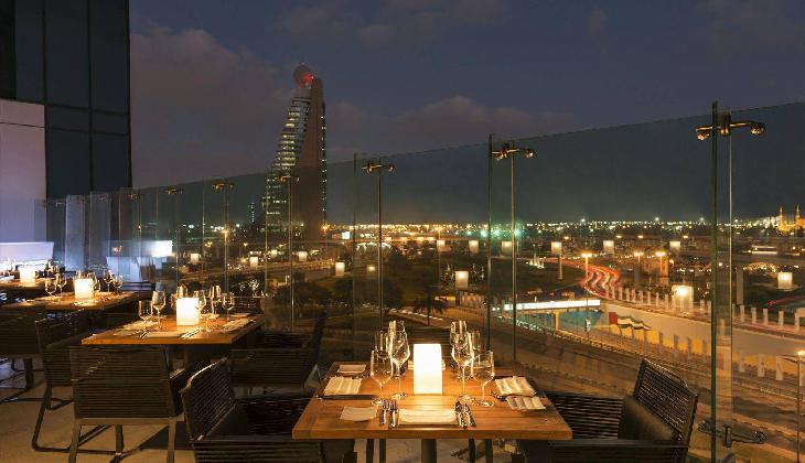 - کافه DAWN & DUSK: این کافه اهمیت خاصی دارد زیرا در طبقه 54 ام هتل بر روی بام و در کنار استخر بزرگ قرار دارد و نوشیدنیهای متفاوتی را میتوان در این کافه سرو کرد. چشمانداز زیبایی که این کافه از دبی دارد به خصوص در شب بسیار جالب و جذاب است.