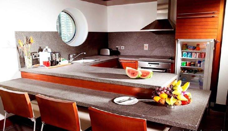 A very contemporary feel to the rooms with modern furniture and pampering bathrooms. All come with fully equipped kitchenette, LCD TV, complimentary Tea & Coffe making facilities, high speed internet connection, personal safe, mini fridge, hair dryer and washer/dryer.