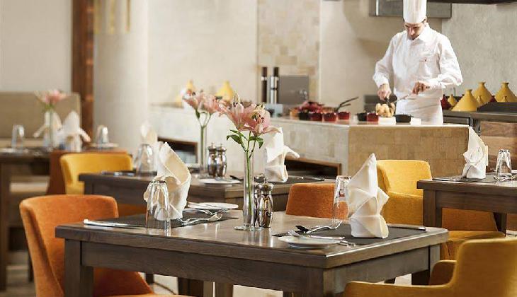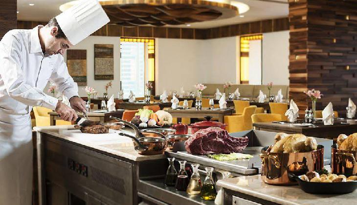 باتوجه به تعداد بالای رستوران و کافه-بار در هتل کارلتون داون تاون (وارویک سابق) ، طیف وسیعی از غذاهای خاورمیانه به همراه سالاد و سبزیجات تازه، غذاهای مدیترانه ای، اسپانیایی، مراکش، لبنانی و آسیایی پخت و سرو میشود. برای استفاده از بوفه صبحانه در رستوران Bayty All Day Dining از شنبه تا پنجشنبه ساعات 5:45 تا 11 و جمعه ها از ساعت 6 صبح تا 12 بعد از ظهر مراجعه کنید. برای نوشیدن انواع نوشیدنی های تازه در کنار انواع اسنک ها میتوانید به کافه-بار Jimmy Wickets Sports Bar & Lounge مراجعه کنید.
